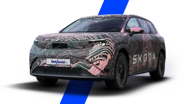 Taky nejambicióznější. Platforma MEB, výroba v ČR, prodej od druhé poloviny 2026. Rovnou s věcmi, které u Škodovek ještě nebyly. Výsuvné kliky, co se zapustí do karoserie. Panoramatická střecha rozdělena do devíti segmentů, která si sama řídí průhlednost. Volitelný paket Relax s masážními sedadly a audiosystémem Sonos uvnitř. Až sedm míst. Tohle není jen větší Enyaq, to je vyšší liga.