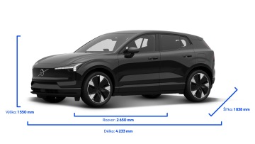 EX30 ve svém malém formátu ztělesňuje všechny hodnoty Volva v oblasti designu. Dlouhý rozvor, velká kola a souměrné převisy dodávají exteriéru na vyváženosti a eleganci. Vůz je dostupný v pěti zářivých barvách laku včetně jasné a expresivní žluté Moss Yellow, která byla inspirována lišejníky ze skal švédského západního pobřeží.